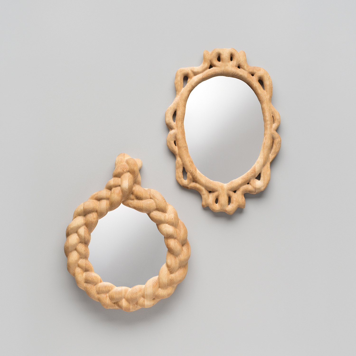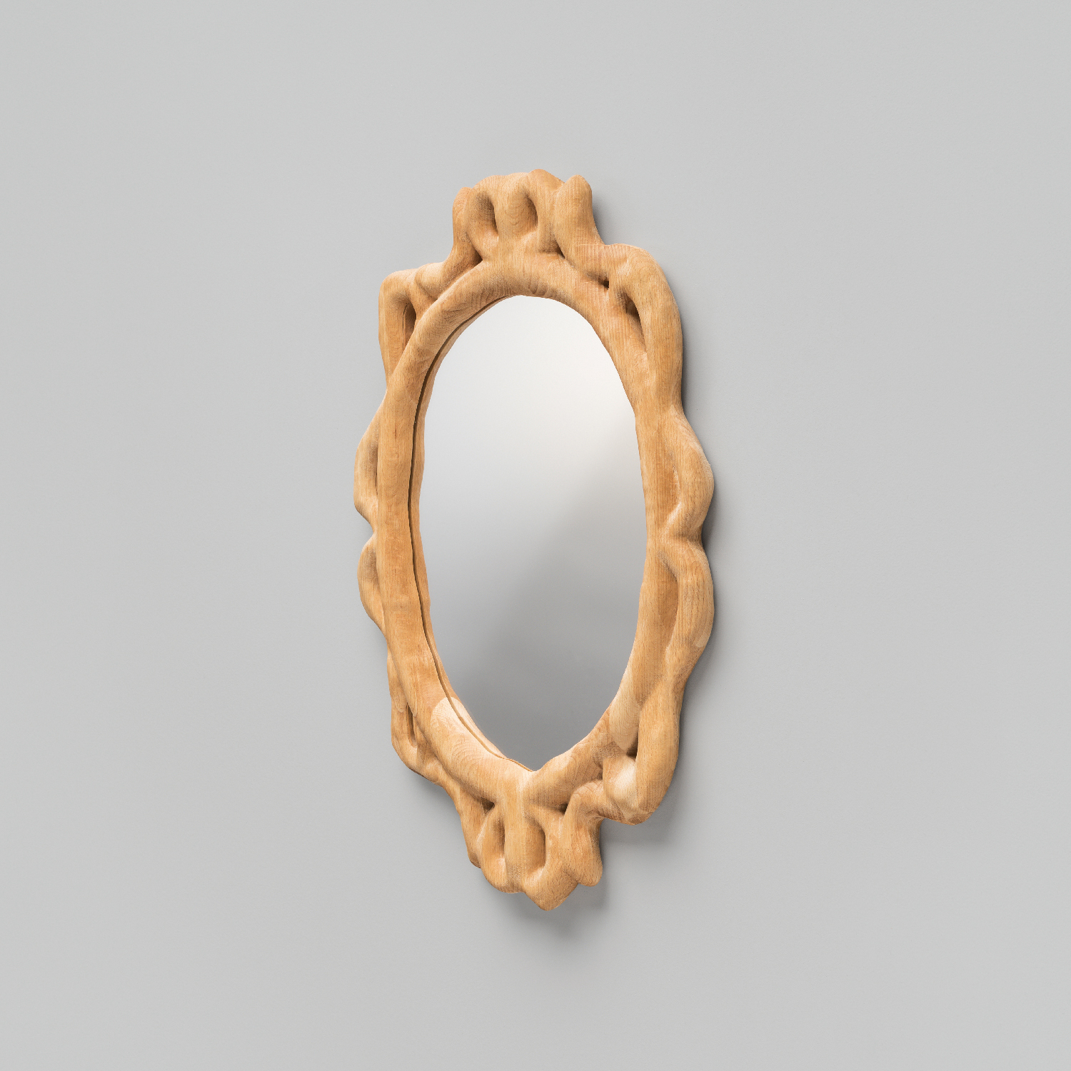 パンの持つワンオフの装飾性に興味を持ち、自ら生地をこね鏡の縁らしき形を焼き上げた後、それを3Dスキャンし木を削り出し、ミラーを作成した。デジタル機械で作られた放漫な造形は現代における高級を表現している。